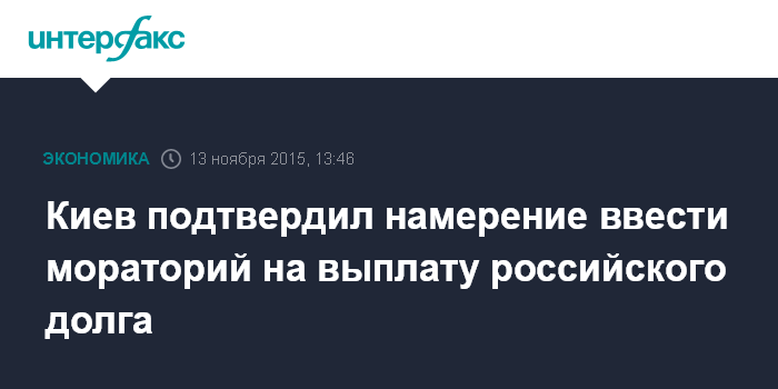 Киев подтвердил намерение ввести мораторий на выплату российского долга