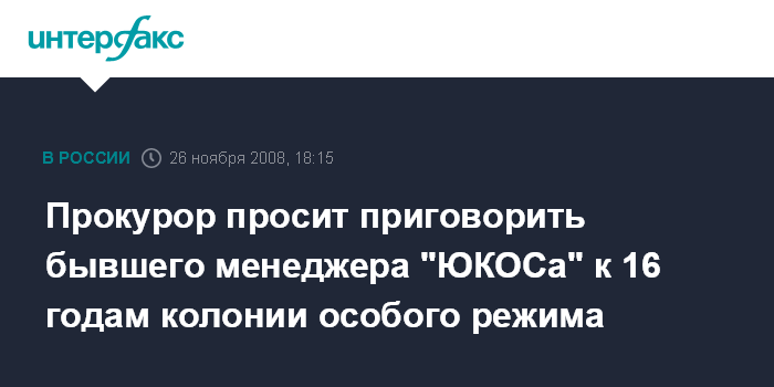 Прокурор просит приговорить бывшего менеджера "ЮКОСа" к 16 годам колонии особого режима