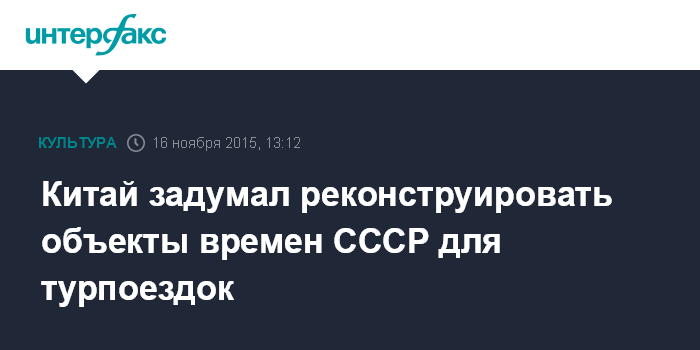 Китай задумал реконструировать объекты времен СССР для турпоездок