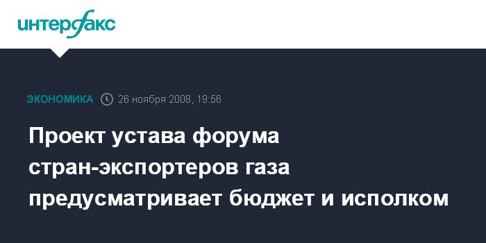 Москва. 26 ноября. INTERFAX.RU - Проект устава форума стран-экспортеров газа предусматривает наличие исполнительного комитета и бюджета организации, сообщил журналистам заместитель министра энергетики Анатолий Яновский. Кроме этого, устав будет предусматривать процедуру утверждения сметы расходов форума. Это позволит перевести организацию стран-эскпортеров газа из статуса неформального в формальный.