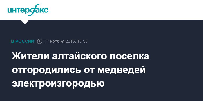Москва. 17 ноября. INTERFAX.RU - Более 3,5 км электрической изгороди установили специалисты Алтайского заповедника в Республике Алтай, чтобы защитить жителей заповедного поселка Яйлю от нашествия бурых медведей, сообщает во вторник пресс-центр республиканского правительства.