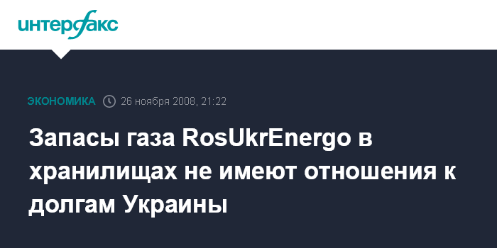 Москва. 26 ноября. INTERFAX.RU - Запасы газа компании RosUkrEnergo, находящиеся в подземных хранилищах газа (ПХГ), полностью оплачены "Газпрому" еще в прошлом году и не имеют отношения к текущим долгам Украины, заявил "Интерфаксу" пресс-секретарь RosUkrEnergo (RUE) Андрей Кнутов.
