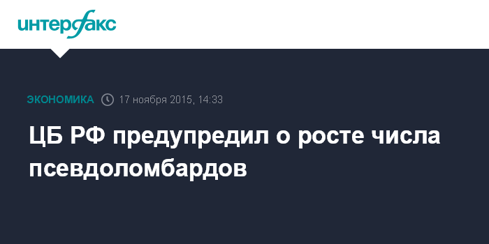 Москва. 17 ноября. INTERFAX.RU – Банк России предупреждает о деятельности организаций, предлагающих гражданам краткосрочные займы под залог имущества и не являющихся ломбардами.