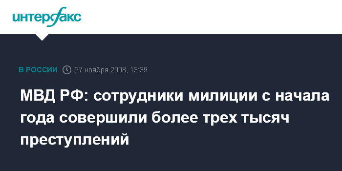 МВД РФ: сотрудники милиции с начала года совершили более трех тысяч преступлений