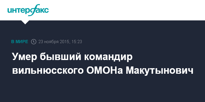 Москва. 23 ноября. INTERFAX.RU - На прошлой неделе от болезни умер бывший командир вильнюсского отряда милиции особого назначения (ОМОН) Болеслав Макутынович.