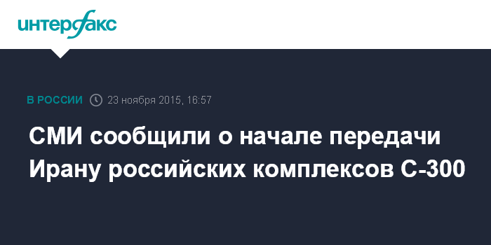 Москва. 23 ноября. INTERFAX.RU - Процесс передачи Тегерану российских ЗРК С-300 уже начался, сообщает в понедельник иранское агентство "Тасним" со ссылкой на посла республики в России Мехди Санаи.