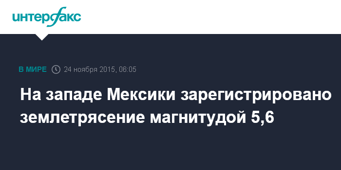 На западе Мексики зарегистрировано землетрясение магнитудой 5,6