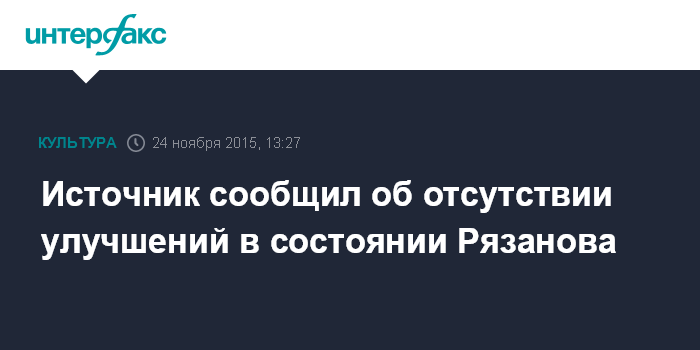 Источник сообщил об отсутствии улучшений в состоянии Рязанова