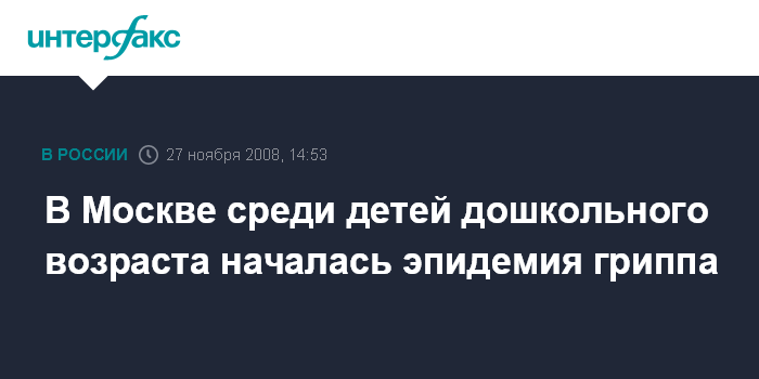 Москва. 27 ноября. INTERFAX.RU - Заболеваемость гриппом и ОРВИ в Москве в возрастной группе детей от трех до шести лет превысила эпидемический порог на 9,1%, сообщили "Интерфаксу" в четверг в столичном управлении Роспотребнадзора.