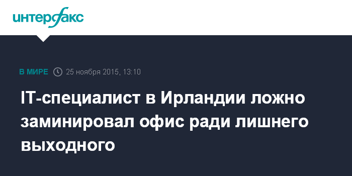 IT-специалист в Ирландии ложно заминировал офис ради лишнего выходного