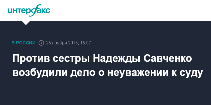 Москва. 25 ноября. INTERFAX.RU - Адвокат Надежды Савченко, которую судят по делу об убийстве российских журналистов, сообщил о том, что сестра украинской летчицы стала фигуранткой уголовного дела.