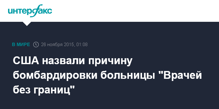 Москва. 26 ноября. INTERFAX.RU - Американские военно-воздушные силы разбомбили больницу организации "Врачи без границ" в афганском городе Кундузе по ошибке, сообщила BBC News со ссылкой на результаты военного расследования.