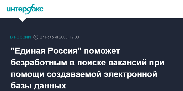"Единая Россия" поможет безработным в поиске вакансий при помощи создаваемой электронной базы данных
