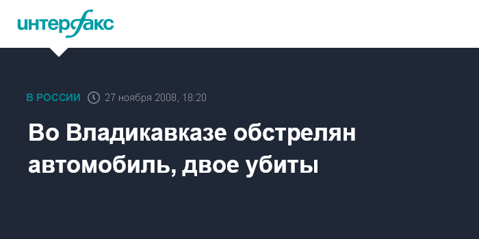 Москва. 27 ноября. INTERFAX.RU - Во Владикавказе (Северная Осетия) в четверг неизвестные обстреляли автомобиль "БМВ Х5", в результате убиты двое находившихся в нем человек, еще один получил ранения.