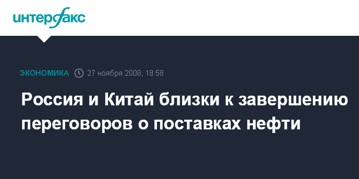 Москва. 27 ноября. INTERFAX.RU - Россия и Китай завершают переговоры о поставках российской нефти в Китай, сообщил журналистам вице-премьер правительства Игорь Сечин.