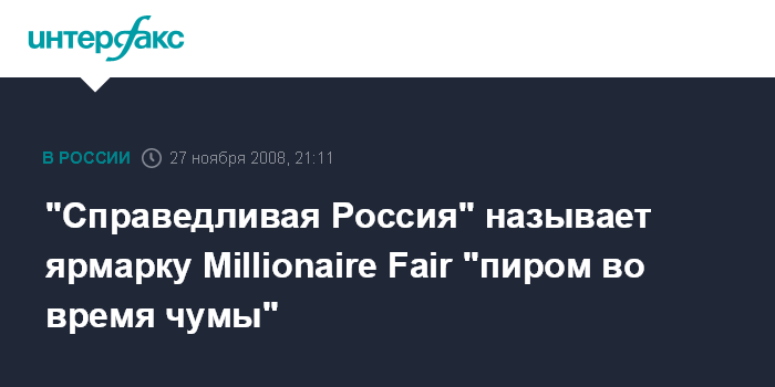 "Справедливая Россия" называет ярмарку Millionaire Fair "пиром во время чумы"
