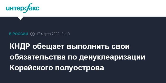 "Хочу заверить, что КНДР добросовестно выполнит все свои обязательства по денуклеаризации Корейского полуострова, и мы считаем, что и другие участники шестисторонних переговоров обязаны последовательно выполнить свои обязательства на основе принципов "действие на действие", - подчеркнул северокорейский дипломат.
