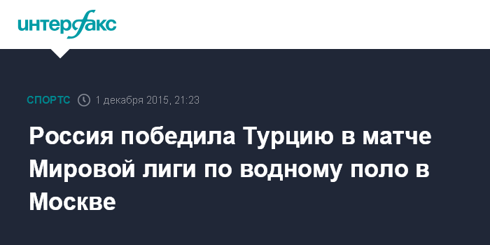 Москва. 1 декабря. INTERFAX.RU - Сборная России по водному поло победила сборную Турции в матче группового этапа Мировой лиги по водному поло.