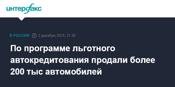 Москва. 2 декабря. INTERFAX.RU - Продажи по программе льготного автокредитования превысили 200 тыс. автомобилей, говорится в сообщении Минпромторга РФ.