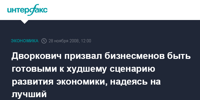 "Очевидно для нас, что мы должны в максимальной степени быть готовым к тому, что ситуация будет развиваться по наиболее неблагоприятному сценарию, но рассчитывать, что в реальности тенденции будут лучше, чем в самых неблагоприятных прогнозах", - отметил Дворкович.