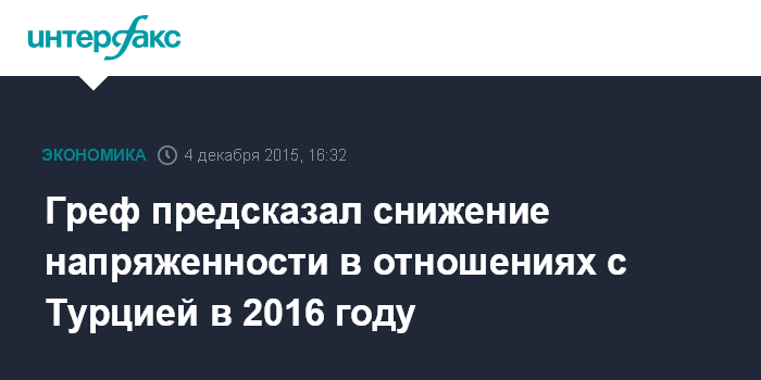 Греф предсказал снижение напряженности в отношениях с Турцией в 2016 году