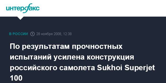 Москва. 28 ноября. INTERFAX.RU - Конструкция создающегося в России перспективного гражданского самолета Sukhoi Superjet 100 усилена по рекомендации Центрального аэрогидродинамического института (ЦАГИ, Жуковский, Московская область).