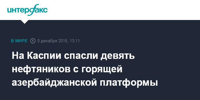 Москва. 5 декабря. INTERFAX.RU - Число спасенных нефтяников с платформы номер 10 морского месторождения "Гюнешли" на Каспии, где накануне вечером вспыхнул пожар, увеличилось до девяти человек, сообщает сайт азербайджанского телеканала ANS.