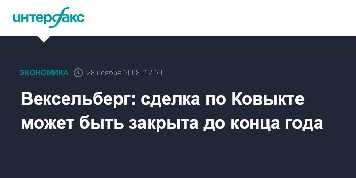 Москва. 28 ноября. INTERFAX.RU - Сделка по Ковыктинскому газовому месторождению может быть закрыта до конца года, сообщил журналистам исполнительный директор ТНК-BP Виктор Вексельберг.