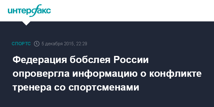 Москва. 5 декабря. INTERFAX.RU - Федерация бобслея России официально заявляет, что информация о конфликте между спортсменами национальной команды и главным тренером Пьером Людерсом не соответствует действительности.