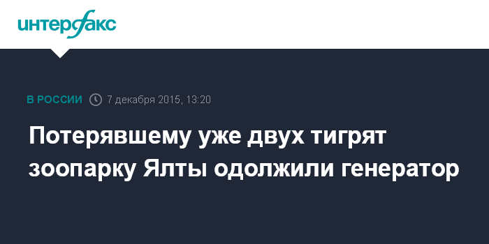 Потерявшему уже двух тигрят зоопарку Ялты одолжили генератор