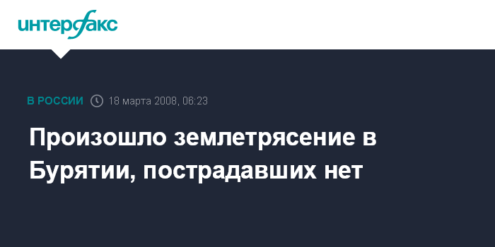 Улан-Удэ. 18 марта. ИНТЕРФАКС-СИБИРЬ - В Бурятии произошло землетрясение, жертв и разрушений нет, сообщает пресс-служба Сибирского регионального центра МЧС России.