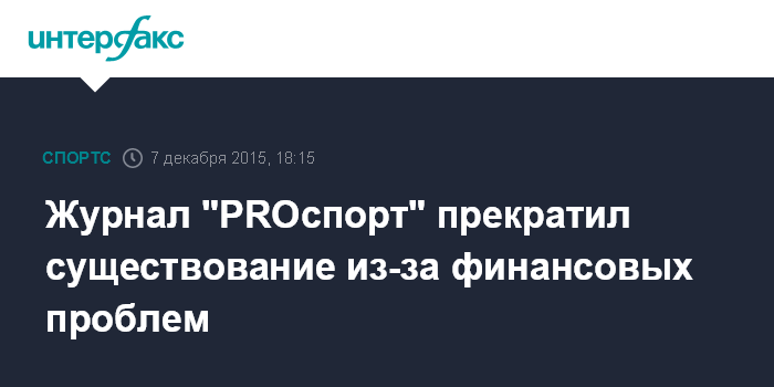 Журнал "PROспорт" прекратил существование из-за финансовых проблем