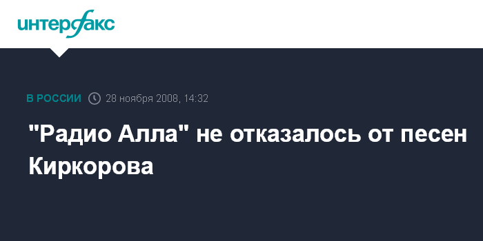 Москва. 28 ноября. INTERFAX.RU – Руководство "Радио Алла" опровергло распространившуюся в СМИ информацию о том, что все песни Филиппа Кирокорова были убраны из эфира радиостанции.