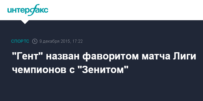 Москва. 9 декабря. INTERFAX.RU - Бельгийский "Гент" является фаворитом встречи шестого тура группового этапа Лиги чемпионов УЕФА против петербургского "Зенита", свидетельствуют котировки британской букмекерской конторы William Hill.