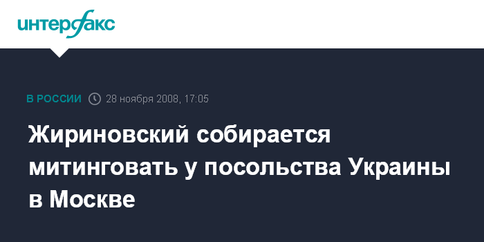 Москва. 28 ноября. INTERFAX.RU - ЛДПР во главе с ее лидером, вице-спикером Госдумы Владимиром Жириновским в понедельник собирается провести митинг у посольства Украины в Москве.