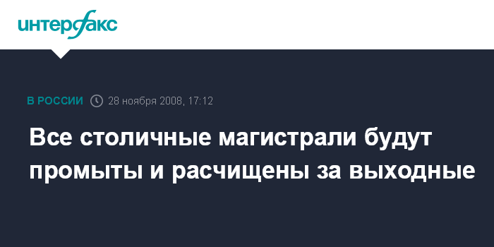 Москва. 28 ноября. INTERFAX.RU - Все столичные магистрали будут промыты и расчищены за выходные, пока не похолодало, сообщил "Интерфаксу" первый заместитель мэра в правительстве Москвы Петр Бирюков в пятницу.