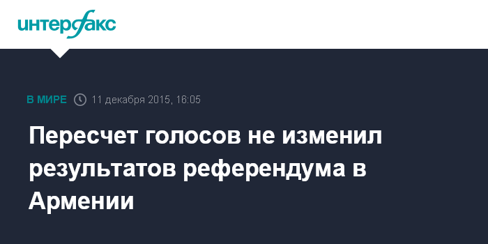 Пересчет голосов не изменил результатов референдума в Армении