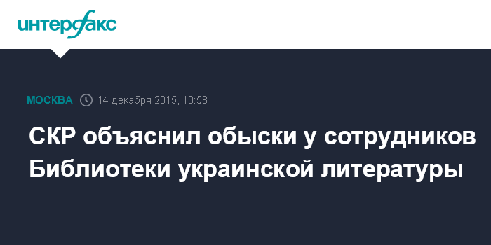 СКР объяснил обыски у сотрудников Библиотеки украинской литературы