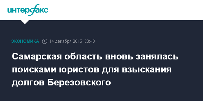 Москва. 14 декабря. INTERFAX.RU – Департамент управления делами губернатора и правительства Самарской области объявил открытый конкурс на оказание комплекса юридических услуг по взысканию в пользу региона 989,4 млн рублей долга с Юлия Дубова и/или наследников Бориса Березовского.