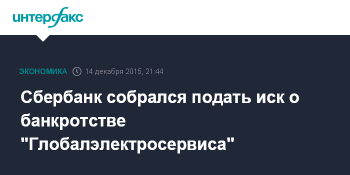 Сбербанк собрался подать иск о банкротстве "Глобалэлектросервиса"