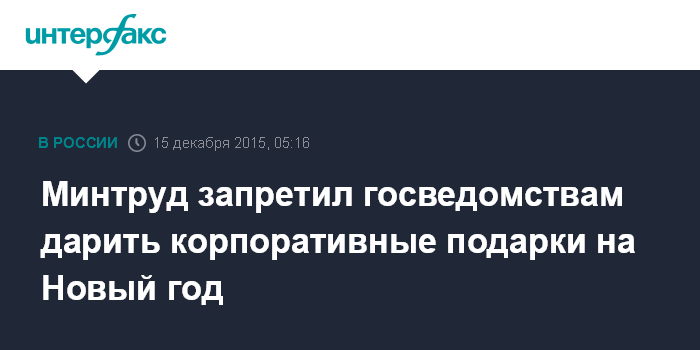 Минтруд запретил госведомствам дарить корпоративные подарки на Новый год