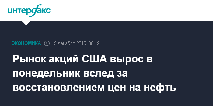 Рынок акций США вырос в понедельник вслед за восстановлением цен на нефть