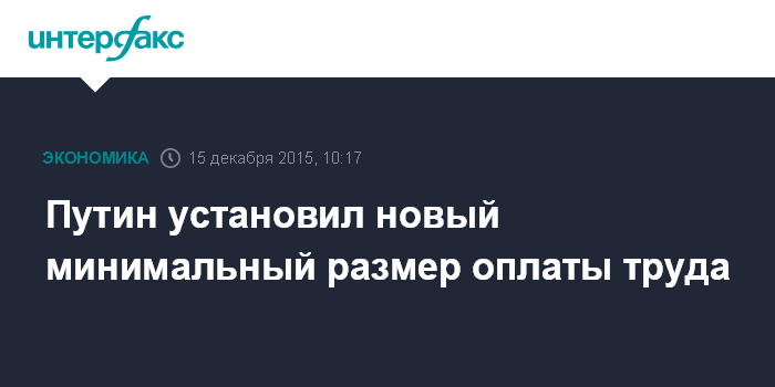 Москва. 15 декабря. INTERFAX.RU - Президент РФ Владимир Путин подписал закон о внесении изменения в статью 1 Федерального закона "О минимальном размере оплаты труда", сообщает официальный интернет-портал правовой информации: