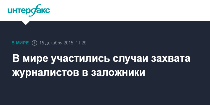 Москва. 15 декабря. INTERFAX.RU - Не менее 54 журналистов были захвачены в заложники в разных странах мира с начала 2015 года, говорится в ежегодном докладе правозащитной организации "Репортеры без границ".
