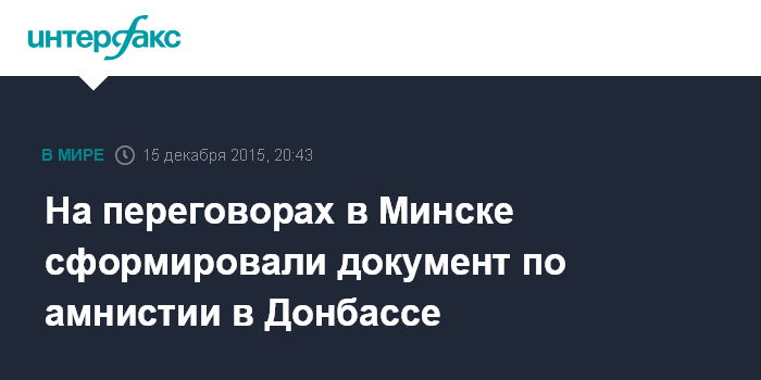 Москва. 15 декабря. INTERFAX.RU - Неофициальный рабочий документ по вопросам амнистии участников боевых действий в Донбассе сформирован на переговорах контактной группы по Украине в Минске во вторник, заявил спецпредставитель ОБСЕ Мартин Сайдик.