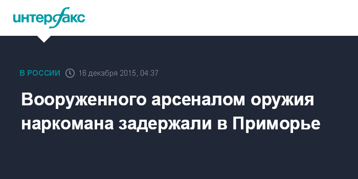 Москва. 16 декабря. INTERFAX.RU - Арсенал оружия и наркотики обнаружили у предпринимателя из приморского города Фокино, которого задержали в состоянии наркотического опьянения, сообщает в среду пресс-служба УФСКН РФ по Приморью.