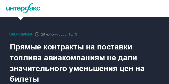 Прямые контракты на поставки топлива авиакомпаниям не дали значительного уменьшения цен на билеты