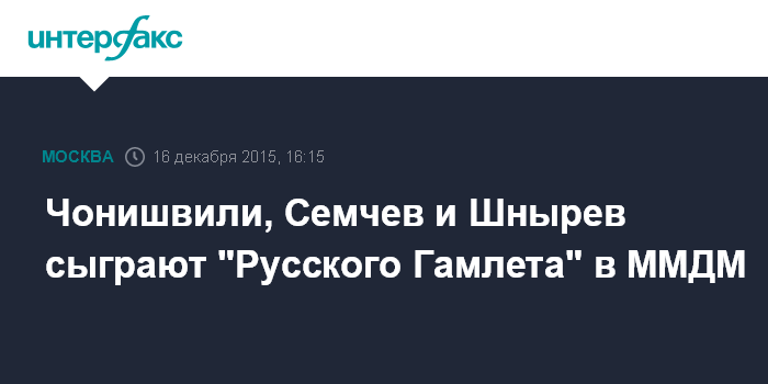 Чонишвили, Семчев и Шнырев сыграют "Русского Гамлета" в ММДМ