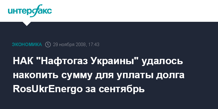 Москва. 29 ноября. INTERFAX.RU - Национальная акционерная компания "Нафтогаз Украины" к концу дня пятницы имела практически полную сумму в валюте, необходимую для уплаты долга швейцарскому газовому трейдеру RosUkrEnergo (RUE) за сентябрь, сообщил агентству "Интерфакс-Украина источник в правительстве.