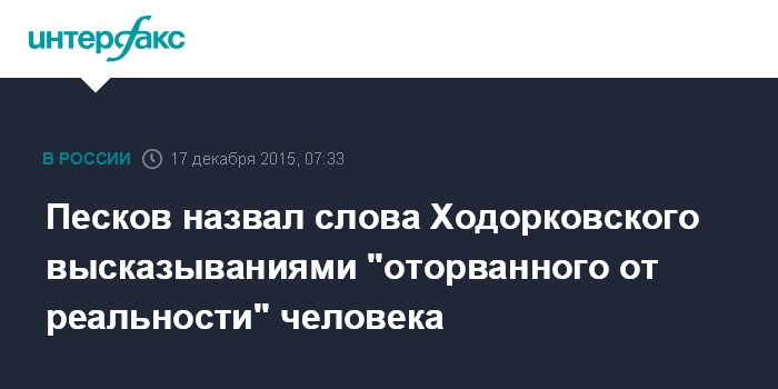 Песков назвал слова Ходорковского высказываниями "оторванного от реальности" человека